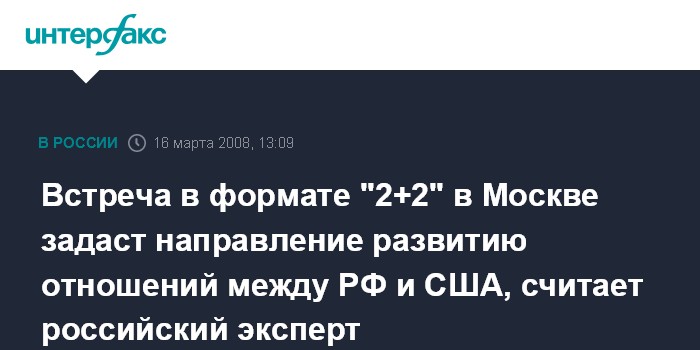 Встреча в формате "2+2" в Москве задаст направление развитию отношений между РФ и США, считает российский эксперт