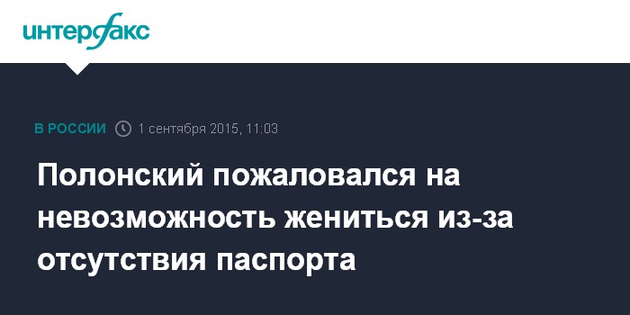 Полонский пожаловался на невозможность жениться из-за отсутствия паспорта