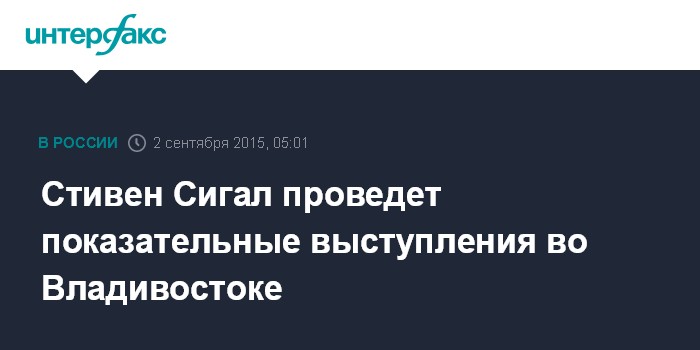 Москва. 2 сентября. INTERFAX.RU - Известный голливудский актер Стивен Сигал приедет во Владивосток на "Битву чемпионов 8", которая будет проводится в рамках Восточного экономического форума, сообщает пресс-служба администрации Приморья.