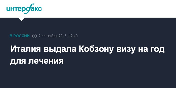 "Национальная итальянская виза выдана господину Кобзону из гуманитарных соображений для его лечения, и этот факт не имеет под собой никакой политической подоплеки", - сообщили "Интерфаксу" в пресс-службе итальянского посольства в Москве.