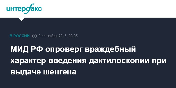МИД РФ опроверг враждебный характер введения дактилоскопии при выдаче шенгена
