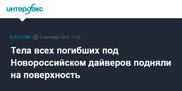 Москва. 3 сентября. INTERFAX.RU - Спасатели в четверг завершили работы по подъему на поверхность тел трех ростовских дайверов, погибших на затонувшем линкоре "Свобода России" под Новороссийском, сообщили агентству "Интерфакс" в пресс-службе Южного регионального поисково-спасательного отряда МЧС РФ.