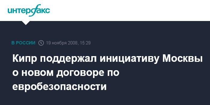 Москва. 19 ноября. INTERFAX.RU - Республика Кипр стала первым европейски государством, официально заявившим о поддержке инициативы президента России по разработке нового Договора о европейской безопасности.