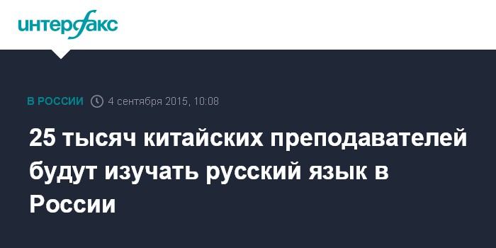 Москва. 4 сентября. INTERFAX.RU - Китай планирует развивать программу изучения русского языка, по ней 25 тысяч преподавателей из КНР приедут в Россию, сообщила вице-премьер Ольга Голодец на заседании Совета по русскому языку при правительстве РФ в ДВФУ (Владивосток).