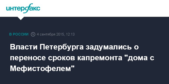 Власти Петербурга задумались о переносе сроков капремонта "дома с Мефистофелем"