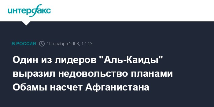 Москва. 19 ноября. INTERFAX.RU - Недовольство планами избранного президента США Барака Обамы, выразившего намерение направить подкрепления в Афганистан, выразил в среду один из лидеров террористической группировки "Аль-Каида" Айман аз-Завахири.