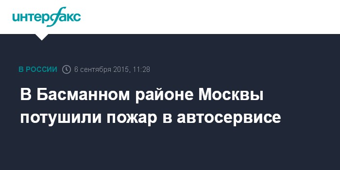 Москва. 6 сентября. INTERFAX.RU - Пожар в автосервисе в Басманном районе Москвы ликвидирован, сообщили "Интерфаксу" в воскресенье в пресс-службе столичного ГУ МЧС России. "В 10:46 пожар ликвидирован", - сказал сотрудник пресс-службы.