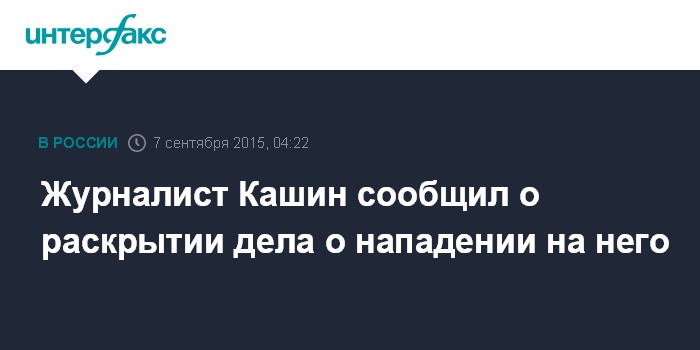 Москва. 7 сентября. INTERFAX.RU - Российский журналист Олег Кашин сообщил на своем сайте, что считает раскрытым дело о нападении на него в 2010 году.