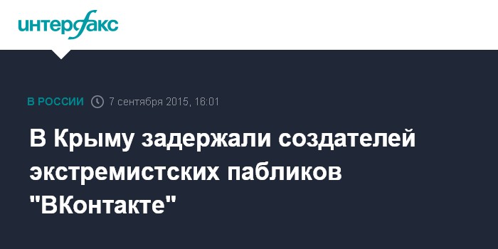 Москва. 7 сентября. INTERFAX.RU - Правоохранители заблокировали за распространение экстремистских материалов два ориентированных на крымскую аудиторию сообщества социальной сети "ВКонтакте", лица, причастные к работе сообществ, задержаны, сообщил руководитель аппарата антитеррористической комиссии Республики Крым Александр Булычев.