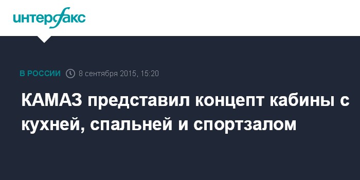 Москва. 8 сентября. INTERFAX.RU - ПАО "КАМАЗ" представило на выставке "Комтранс-2015" во вторник концепт кабины для магистральных автомобилей, которую планируется запустить в серийное производство в 2020 году, говорится в сообщении пресс-службы компании.