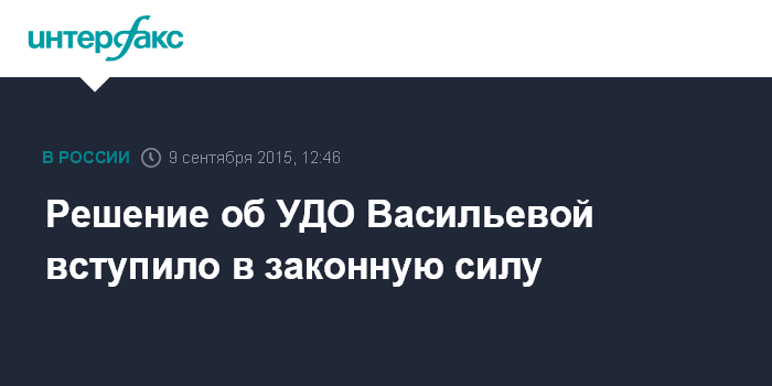 "Решение вступило в законную силу, материалы дела уже сданы в архив",- сообщили "Интерфаксу" в Судогодском районном суде Владимирской области, который выносил решение об УДО Васильевой.