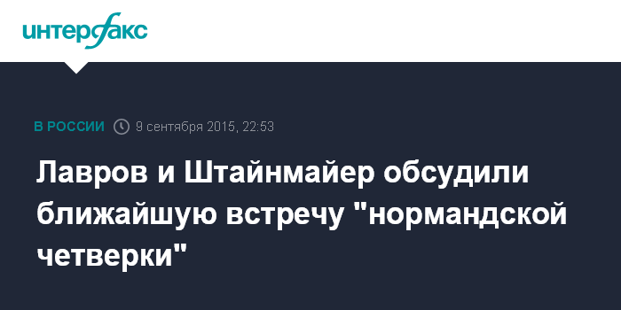Москва. 9 сентября. INTERFAX.RU - Встреча глав МИД нормандского формата состоится в конце недели в Берлине.