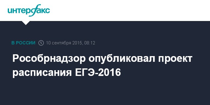 Москва. 10 сентября. INTERFAX.RU - Федеральная служба по надзору в сфере образования и науки опубликовала проект расписания Единых государственных экзаменов, которые пройдут в 2016 году.