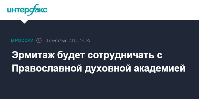 Москва. 10 сентября. INTERFAX.RU - Государственный Эрмитаж подписал соглашение о сотрудничестве с Санкт-Петербургской православной духовной академией, передал корреспондент "Интерфакса" с церемонии подписания в четверг.