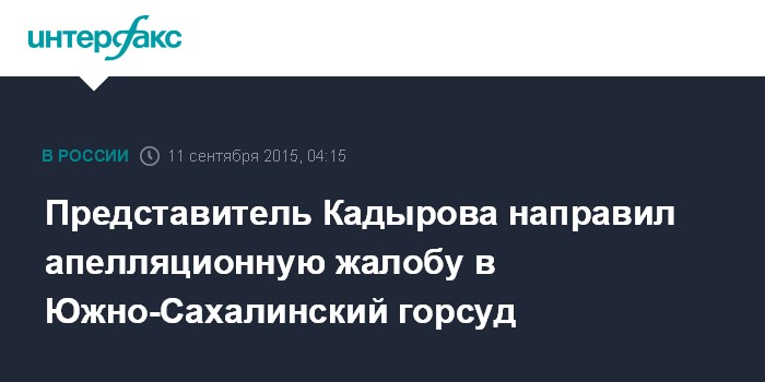 Представитель Кадырова направил апелляционную жалобу в Южно-Сахалинский горсуд