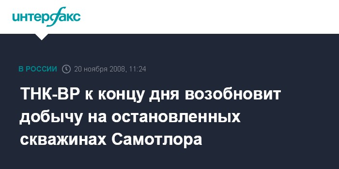 Москва. 20 ноября. INTERFAX.RU - ТНК-BP к концу рабочего дня 20 ноября возобновит добычу на остановленных скважинах Самотлорского месторождения в Ханты-Мансийском автономном округе (ХМАО), сообщили Агентству нефтяной информации (АНИ) в пресс-службе компании.