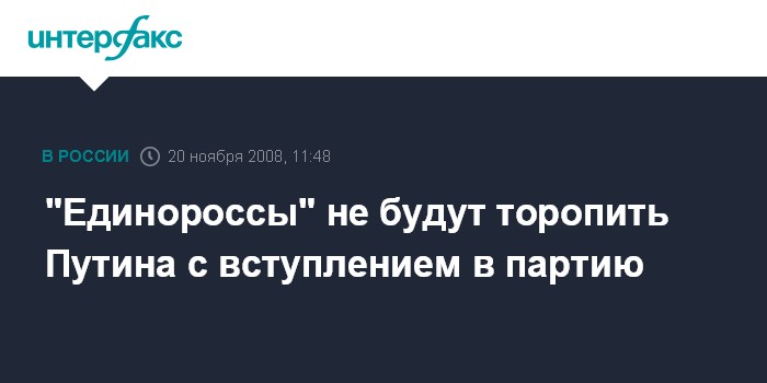 Москва. 20 ноября. INTERFAX.RU - "Единороссы" хотели бы, чтобы премьер-министр и лидер партии Владимир Путин официально вступил в "Единую Россию", но не считают нужным торопить события, заявил член бюро высшего совета партии, первый вице-спикер Госдумы РФ Олег Морозов.