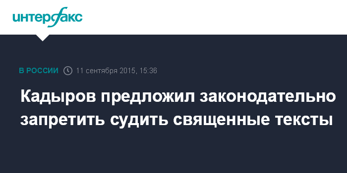 Москва. 11 сентября. INTERFAX.RU - Глава Чеченской республики Рамзан Кадыров призвал депутатов Госдумы законодательно запретить судам принимать решения, касающиеся текстов Корана и других божественных писаний.
