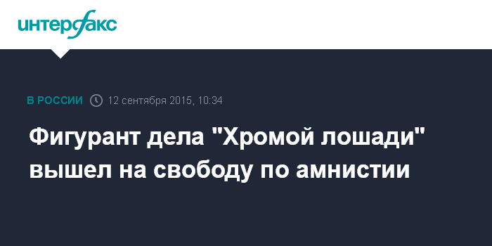 Фигурант дела "Хромой лошади" вышел на свободу по амнистии