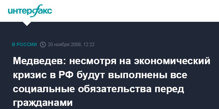 Медведев: несмотря на экономический кризис в РФ будут выполнены все социальные обязательства перед гражданами