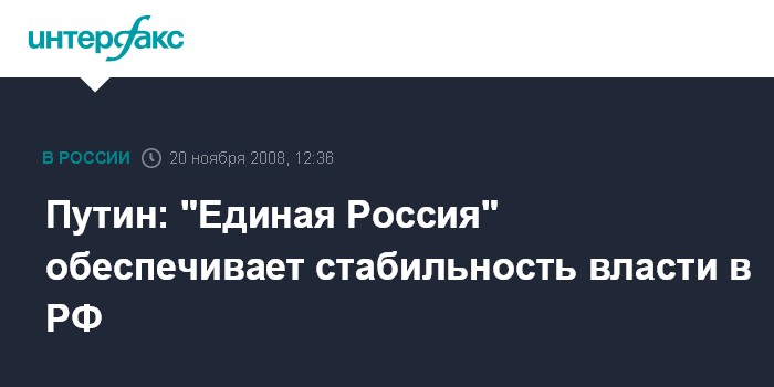 Москва. 20 ноября. INTERFAX.RU - Председатель "Единой России", премьер РФ Владимир Путин заявил, что единороссам удалось обеспечить преемственность и стабильность власти в России.
