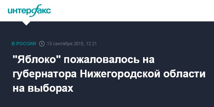 Москва. 13 сентября. INTERFAX.RU - Представители партии "Яблоко" обратились в нижегородский избирком с жалобой на нарушение законодательства в ходе выборов в думу Нижнего Новгорода.