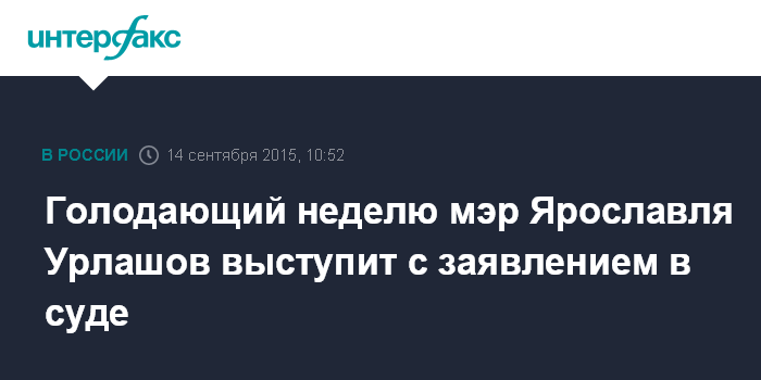 Голодающий неделю мэр Ярославля Урлашов выступит с заявлением в суде
