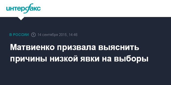 Москва. 14 сентября. INTERFAX.RU - Партии в регионах с низкой явкой на прошедших в воскресенье выборах должны сделать выводы о том, почему им не удалось привлечь избирателей на участки, считает спикер Совета Федерации Валентина Матвиенко.