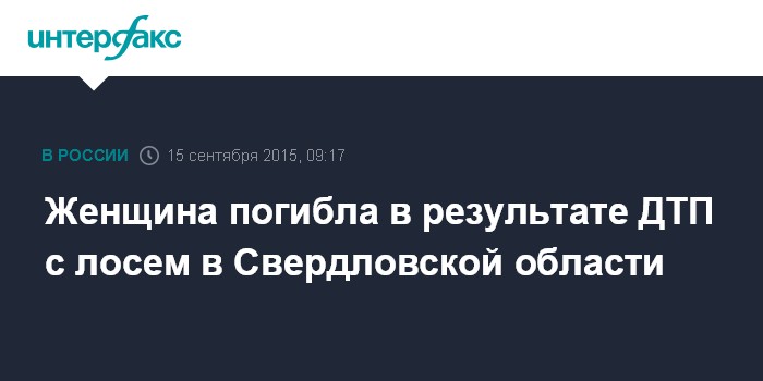 Москва. 15 сентября. INTERFAX.RU - Один человек погиб, еще один пострадал в результате ДТП с лосем в Свердловской области, сообщает пресс-служба регионального УГИБДД во вторник.