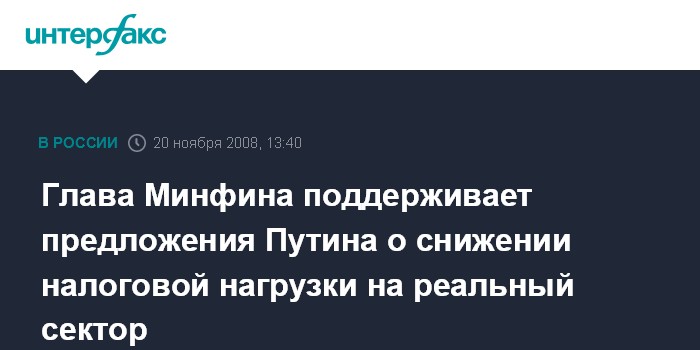 Глава Минфина поддерживает предложения Путина о снижении налоговой нагрузки на реальный сектор