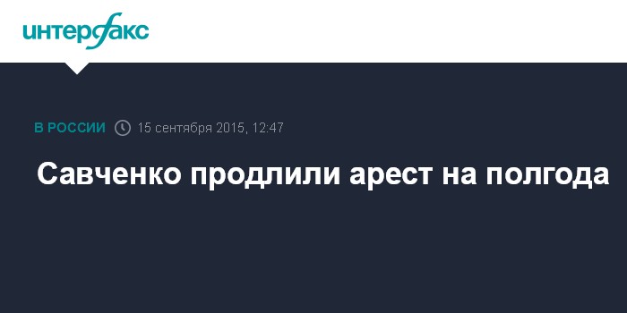 Москва. 15 сентября. INTERFAX.RU - Донецкий городской суд Ростовской области продлил на шесть месяцев срок ареста украинки Надежды Савченко, обвиняемой в РФ в убийстве российских журналистов.