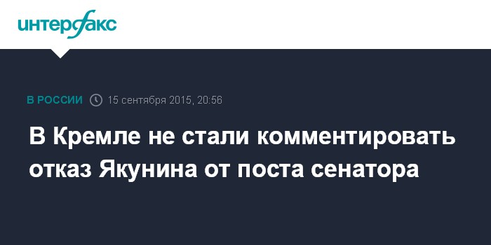 В Кремле не стали комментировать отказ Якунина от поста сенатора