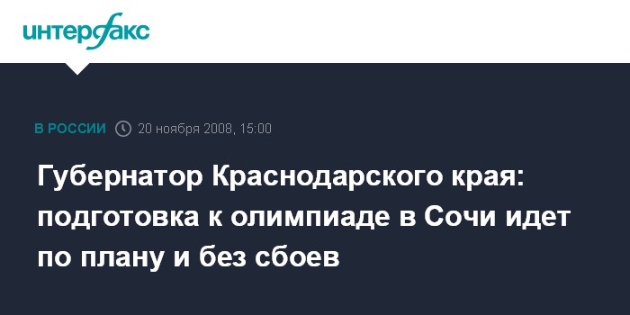 Москва. 20 ноября. INTERFAX.RU - Губернатор Краснодарского края Александр Ткачев назвал нелепыми утверждение ряда западных СМИ о том, что Россия не в состоянии подготовиться к олимпиаде в Сочи.