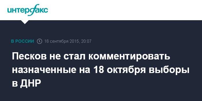 Песков не стал комментировать назначенные на 18 октября выборы в ДНР