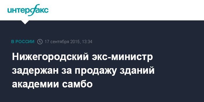 Источник в правоохранительных органах региона сообщил "Интерфаксу" в четверг, что бывший чиновник был задержан накануне "в рамках уголовного дела, возбужденного по ч.4 ст. 159 УК РФ (мошенничество в особо крупном размере) в связи с продажей зданий Всемирной академии самбо в Кстовском районе Нижегородской области в 2012 году".