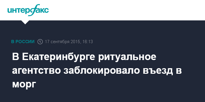 Москва. 17 сентября. INTERFAX.RU - Прокуратура проводит проверку по факту конфликта между ритуальными агентствами Екатеринбурга и администрацией "Дома прощания "Вознесение", вспыхнувшего из-за проблем с въездом в судебно-медицинский морг, сообщает пресс-служба Управления генпрокуратуры РФ в УрФО в четверг.