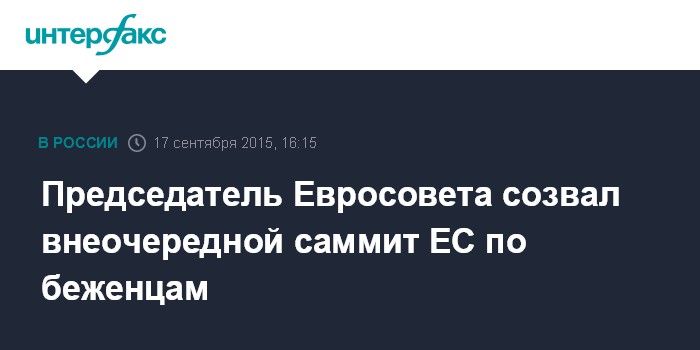 "Я созываю внеочередной Европейский Совет в среду, 23 сентября, в 18 часов, чтобы обсудить, как бороться с кризисом беженцев", - написал Д.Туск в своем микроблоге в четверг.
