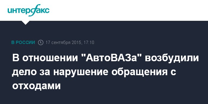 Москва. 17 сентября. INTERFAX.RU - Самарская межрайонная природоохранная прокуратура при проверке "АвтоВАЗа" возбудила в отношении предприятия административное дело, сообщает пресс-служба надзорного ведомства.