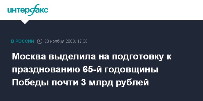 Москва выделила на подготовку к празднованию 65-й годовщины Победы почти 3 млрд рублей
