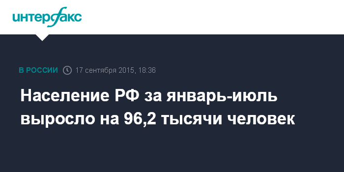 Население РФ за январь-июль выросло на 96,2 тысячи человек