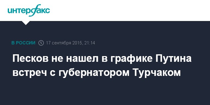 Москва. 17 сентября. INTERFAX.RU - Президент РФ Владимир Путин не планирует отдельно встречаться с главой Псковской области Андреем Турчаком, сообщил его пресс-секретарь Дмитрий Песков.