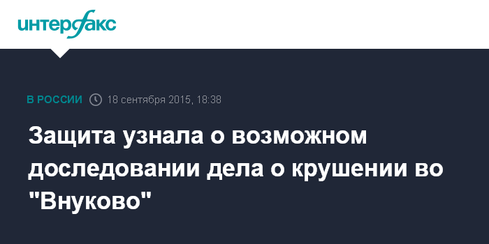 Защита узнала о возможном доследовании дела о крушении во "Внуково"