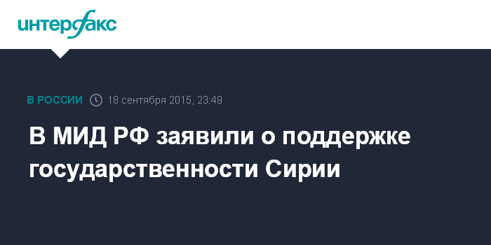 В МИД РФ заявили о поддержке государственности Сирии
