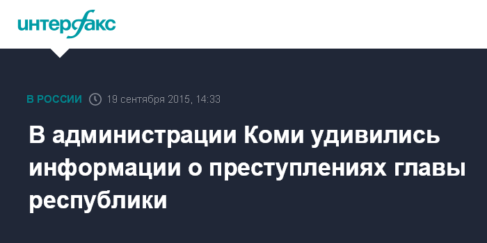 Москва. 19 сентября. INTERFAX.RU - Удивление вызвала в администрации Коми информация Следственного комитета России о преступной деятельности главы республики Вячеслава Гайзера. "Мы крайне удивлены этой информацией", - сказал "Интерфаксу" источник в администрации в субботу.