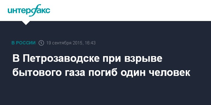 Москва. 19 сентября. INTERFAX.RU - В результате взрыва бытового газа в столице Карелии погиб один человек, шестеро госпитализированы, сообщила в субботу администрация Петрозаводска.
