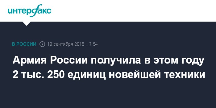 Москва. 19 сентября. INTERFAX.RU - С начала года в войска поступило 2 тыс. 250 единиц новейшей военной техники, заявил в субботу президент России Владимир Путин.