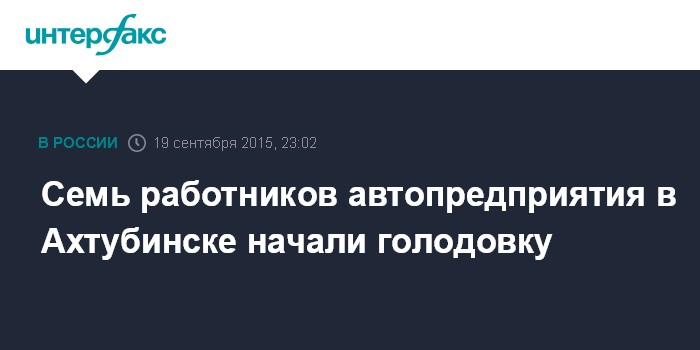 Москва. 19 сентября. INTERFAX.RU - Семь сотрудников муниципального автотранспортного предприятия в Ахтубинске (Астраханская область) начали голодовку, сообщил "Интерфаксу" депутат облдумы Александр Каманин в субботу.