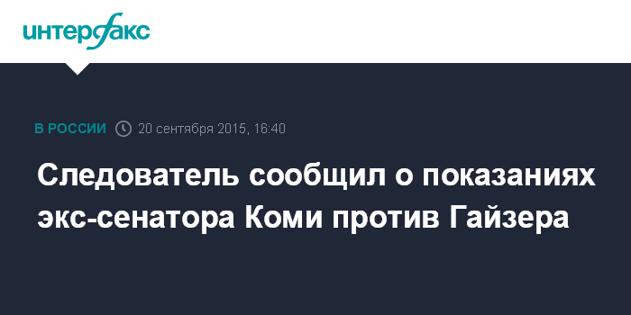 Следователь сообщил о показаниях экс-сенатора Коми против Гайзера
