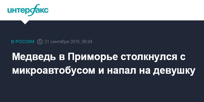 Москва. 21 сентября. INTERFAX.RU – Гималайский медведь столкнулся с микроавтобусом на одной из центральных улиц в приморском поселке Кировский, после чего напал на девушку.