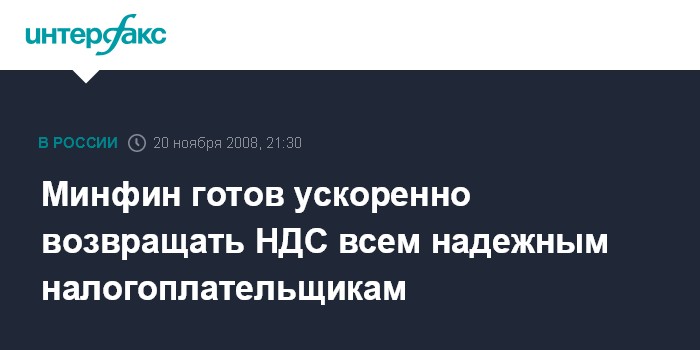 Минфин готов ускоренно возвращать НДС всем надежным налогоплательщикам